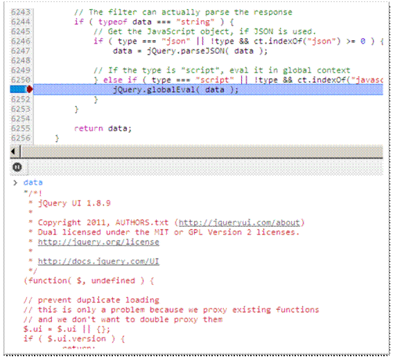 順便一提的是,通過這種方式加載的外部JavaScript不可以在Firebug中調(diào)試,因為AJAX結(jié)束后外部JavaScript的解析和內(nèi)聯(lián)JavaScript的解析是一樣的(都是調(diào)用jQuery.globalEval):