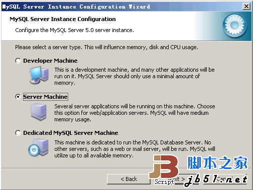 選擇MySQL運(yùn)行模式:Server Machine