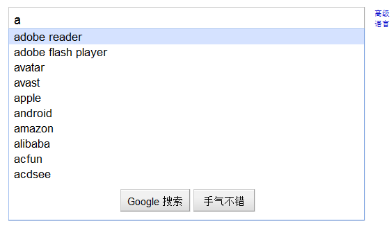 自動補(bǔ)全也成自動完成,最經(jīng)典的如google的搜索框,輸入一個(gè)字母后會給用戶很多提示選擇