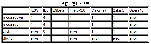 IE6/7中,click事件無法獲取中鍵的值。IE8則可以,但值為0。