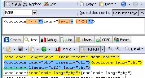 <coolcode lang="[a-z]+".*?>