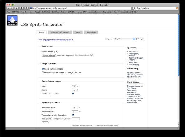 令人驚艷的Sprite generator讓你可以發(fā)送一個含有圖像的zip壓縮文件。然后它把你的圖片結(jié)合進貼圖定位中返回給你,更妙的是,還可以把CSS代碼頁生成出來,你只需粘貼到主CSS文件中去即可。