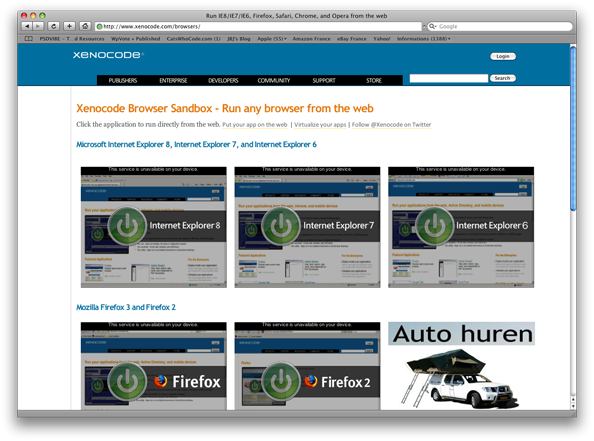 依我之見,Xenocode瀏覽器乃測試網(wǎng)站在不同瀏覽器顯示效果的終極瀏覽器。Xenocode允許你從網(wǎng)上直接加載IE6、IE7、IE8、Firefox 2、Firefox 3、Google Chrome以及Opera。唯一的弱點是:對于允許Macs和GNU/Linux的PC來說其服務(wù)不可用。