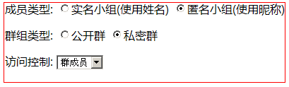 <input type="radio" name="member_type" value='1'/>匿名小組(使用昵稱)