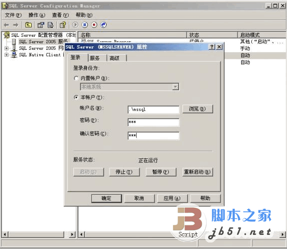 啟動(dòng)服務(wù)帳戶,選擇本帳戶,輸入:.\帳號名,輸入密碼,點(diǎn)確定,就OK了