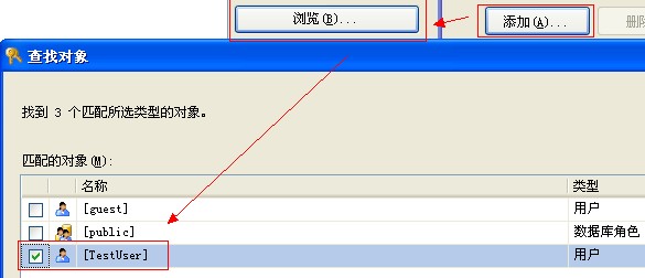 2. 在上面的第3步驟,設(shè)置完TestLog數(shù)據(jù)后,需要點(diǎn)擊【確認(rèn)】按鈕,完成創(chuàng)建用戶操作,如果這個(gè)時(shí)候去設(shè)置【安全對象】,是無法在【添加】-【特定對象】-【對象類型】-【登陸名】-【瀏覽】中找到剛剛新建的TestUser用戶的。