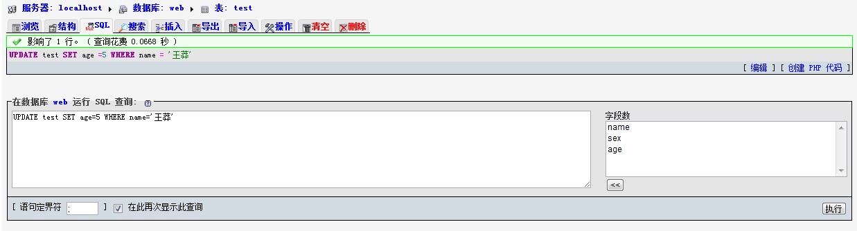 UPDATE test SET age=5 WHERE 'name‘='王莽'