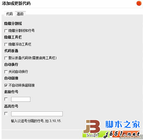 順便給高級配置頁多加了一個選項“不自動轉(zhuǎn)換超鏈接”,syntaxhighlighter默認會把代碼里的網(wǎng)址轉(zhuǎn)換成超鏈接,看起來很不爽,現(xiàn)在可以自由設(shè)置了,呵呵