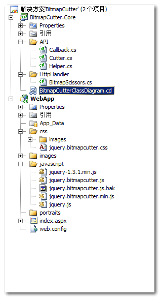 其中BitmapCutter.Core是圖片的服務(wù)器端處理程序, 類圖為: