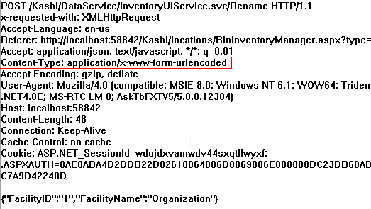 我注意到,當在jquery中使用$.post()后,默認的contentType是application/x-www-form-urlencoded 形式進行了urlencoded - 當我的asp.net MVC代碼需要的contentType=application/json