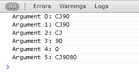 console.info("Argument " + i + ": " + arguments[i]);