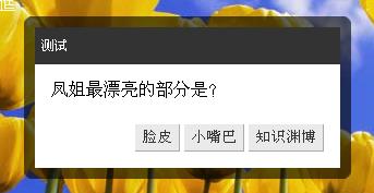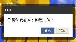 Boxy.confirm("你確認要看鳳姐的照片嗎?", //確認提示信息
