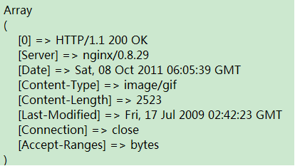 get_headers() 返回一個數(shù)組,包含有服務器響應一個 HTTP 請求所發(fā)送的標頭。如果失敗則返回 FALSE 并發(fā)出一條 E_WARNING 級別的錯誤信息。
