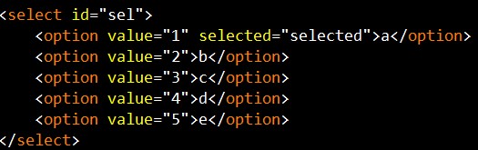 $('select#sel')[0].selectedIndex =索引值;索引值=0,1,2....