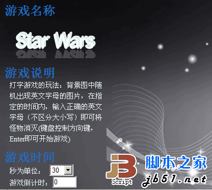 在線演示:http://demo.jb51.net/js/2011/StarWars/