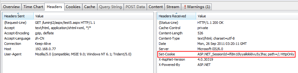 Session是針對用戶的,我們也可以理解為是針對瀏覽器的。在瀏覽器首次訪問ASP.NET網(wǎng)頁的時候(網(wǎng)頁沒有關(guān)閉session功能),它會發(fā)送如下的HTTP頭給客戶端: