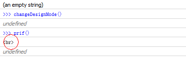 控制臺中執(zhí)行changeDesignMode方法,再執(zhí)行prif方法,這時輸出的innerHTML為“<br>”,如下