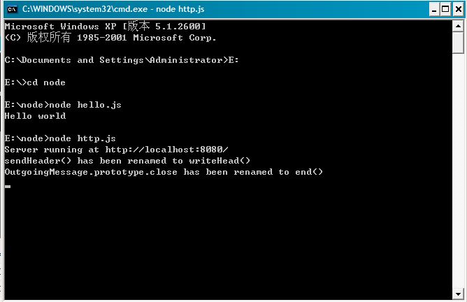然后我們?cè)诿_(tái)中輸入命令node http.js,在瀏覽器輸入http://localhost:8080/