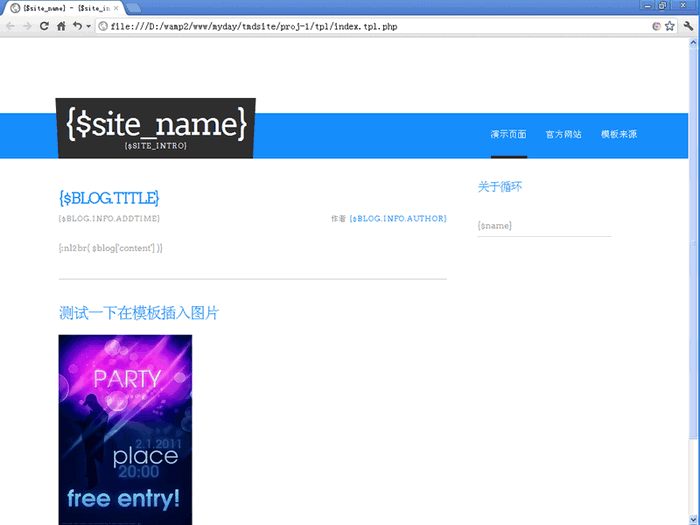 $TPL->assign('site_intro', '我是一個(gè)PHP程序員,tmd_tpl的作者。');