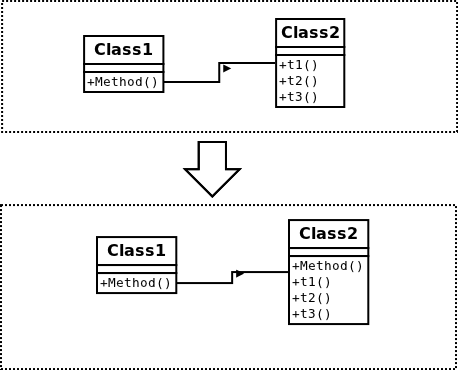 如果一個類中的方法與另一個類有很多的交流,那么我們就在另一個類中建立一個有類似功能的新函數(shù),將舊函數(shù)變成一個單純的Delegating Method, 或是將舊函數(shù)移除。
