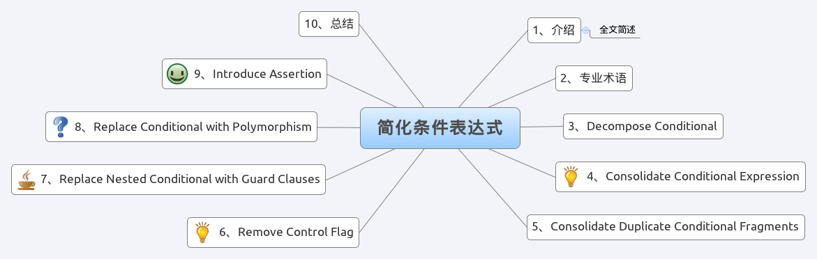 條件語(yǔ)句的“合并理由”也同時(shí)指出了“不要合并”的理由:如果你認(rèn)為你的這些檢查的確彼此獨(dú)立,的確不應(yīng)該被視為同一次檢查,那么就不要使用本項(xiàng)重構(gòu)。因?yàn)樵谶@種情況下,你的代碼已經(jīng)清楚表達(dá)出自己的意義。