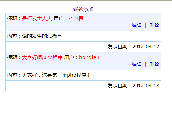 echo "<div align='center'><a href='add.php'>繼續(xù)添加</a></div>";