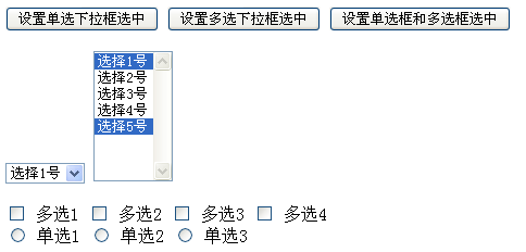 $("#single").val("5"); // 和$("#single").val("選擇5號");這 種方式都可以達到效果