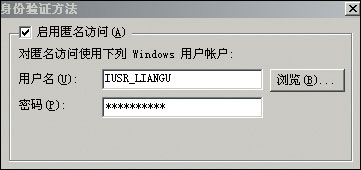 3. 打開IIS管理器,右擊Abc.com主機名,在彈出的菜單中選擇“屬性→目錄安全性”選項卡,點擊身份驗證和訪問控制的[編輯],彈出圖2所示對話框,匿名訪問用戶默認(rèn)的就是“IUSR_機器名”,點擊[瀏覽],在“選擇用戶”對話框中找到前面創(chuàng)建的Abc賬戶,確定后重復(fù)輸入密碼。