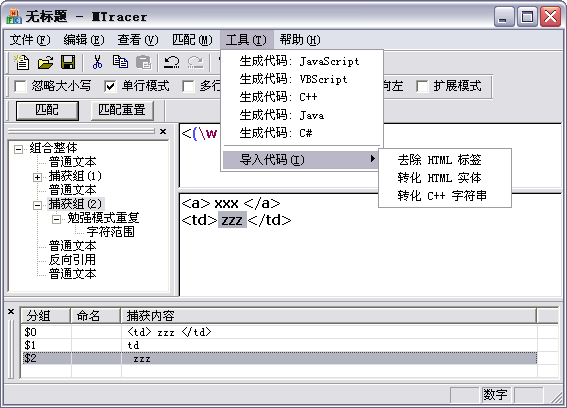 正則工具 Match Tracer 是一款正則表達(dá)式編寫(xiě)及調(diào)試工具,它提供了一個(gè)可視化的正則表達(dá)式編寫(xiě)環(huán)境。