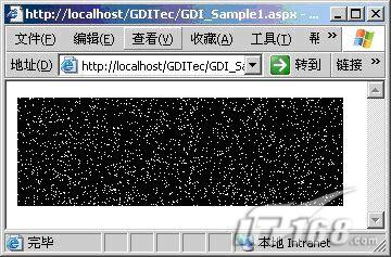在通過IE瀏覽器瀏覽的時候,我們可以看到頁面中已經(jīng)有了一個黑色背景摻雜白色點點的圖片。當然這只是簡單的應用,在下一節(jié)里,我們將繼續(xù)介紹使用System.Drawing下的類的使用。