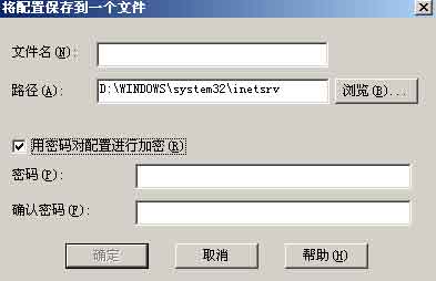 此外為了進一步提高網(wǎng)站配置信息的安全性,我們還可以將圖3界面中的“用密碼對配置進行加密”復選項選中,并在“密碼”文本框以及“確認密碼”文本框中輸入強密碼,最后單擊一下“確定”按鈕,這樣目標網(wǎng)站的配置信息將被自動保存到一個指定的文件中了。