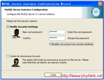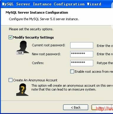 下面有個(gè)復(fù)選框是選擇是否允許遠(yuǎn)程機(jī)器用root用戶連接到你的mysql服務(wù)器上面,