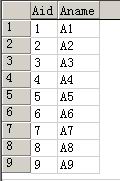 圖1中即表A所有記錄集A中存在的Aid為:1 2 3 4 5 6 7 8 9