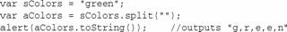 如果把空字符串聲明為分隔符,那么split()方法返回的數(shù)組中的每個項是字符串的字符,例如: