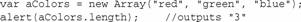 此外,如果知道數(shù)組應(yīng)該存放的值,還可用參數(shù)聲明這些值,創(chuàng)建大小與參數(shù)個數(shù)相等的Array對象。例如,下面的代碼將創(chuàng)建一個有三個字符串的數(shù)組: