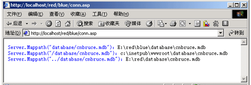 6,再來(lái)看red文件夾下的blue文件夾內(nèi)的,URL:http://localhost/red/blue/conn.asp