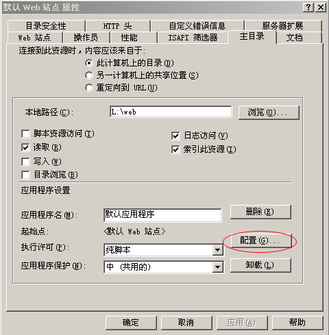 單擊“主目錄”,做如下設(shè)置:在“本地路徑”中選擇你的機(jī)子上要作為站點(diǎn)根目錄的文件夾,比如我的是L:\WEB,如下圖:然后點(diǎn)擊右下方的“配置”,彈出新的對(duì)話框