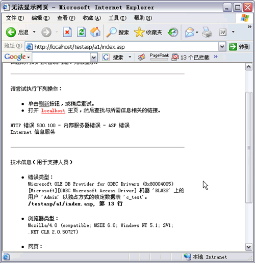 順便,我這里最極端的則是,數(shù)據(jù)庫文件打開,并且表也打開,F(xiàn)AT32的情況下,網(wǎng)頁瀏覽依然沒有問題(WINXPSP2,ACCESS2003),僅在打開設(shè)計數(shù)據(jù)庫表時,才出現(xiàn)如上錯誤。
