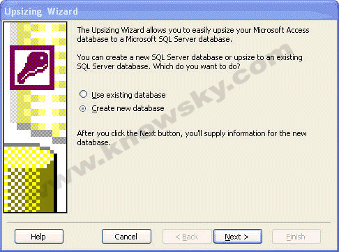 為了啟動(dòng)數(shù)據(jù)庫(kù)升級(jí)向?qū)В葟墓ぞ卟藛螜谥羞x擇數(shù)據(jù)庫(kù)功能,然后從子菜單中選擇升級(jí)向?qū)?。向?qū)У牡谝粋€(gè)面板提供兩種選擇:你可以建立一個(gè)新的SQL Server 數(shù)據(jù)庫(kù)來(lái)存放Access表格,如圖A所示,或者你可以在一個(gè)現(xiàn)成的SQL Server數(shù)據(jù)庫(kù)中添加表格。選擇一個(gè)現(xiàn)成的SQL Server數(shù)據(jù)庫(kù)將需要輸入一個(gè)數(shù)據(jù)服務(wù)名稱(DSN)。