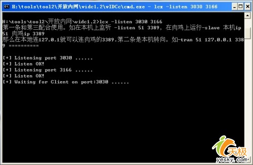 如lcx –listen 3030 3166 見下圖