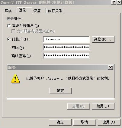 現(xiàn)在,在服務里重啟Serv-U FTP Server服務就可以正常啟動了。當然,到這里還沒有完全設(shè)置完,你的FTP用戶因為沒有權(quán)限還是登錄不了的,所以還要設(shè)置一下目錄的權(quán)限。