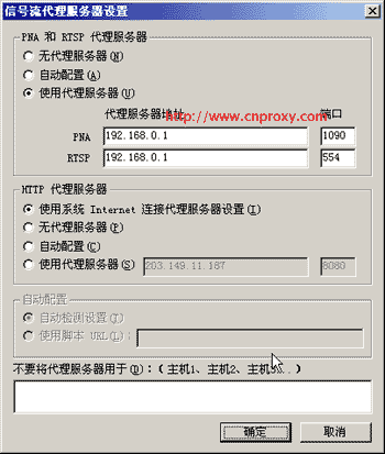 MMS協(xié)議代理和RTSP協(xié)議代理設置方法相同。注意:不同協(xié)議端口不同,MMS協(xié)議默認端口1755,RTSP協(xié)議默認端口554。