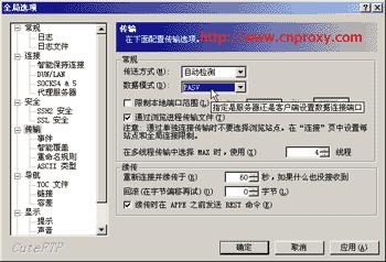 CuteFTP的SOCKS5代理只支持PASV方式,但是隨著網絡安全的普及,已經有不少FTP服務器不支持PASV方式,所以建議您盡量不要用SOCKS5代理CuteFTP。
