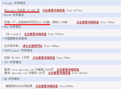 第二步查詢你得到的同一IP的域名在百度GOOGLE上被收錄的頁面