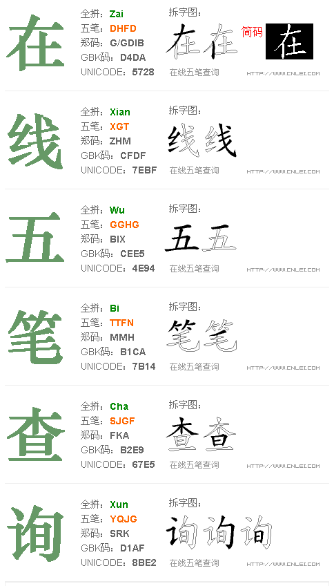 在線五筆查詢:http://www.cnlei.com/L.Search/WuBi/