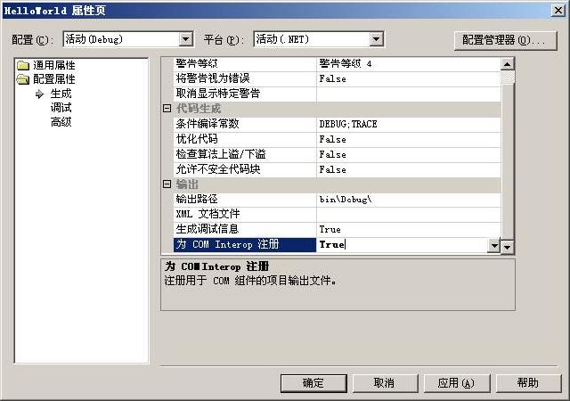 在vs2005開發(fā)環(huán)境下還需要做一點(diǎn)調(diào)整.應(yīng)該把設(shè)置屬性[ComVisible(true)]才能夠注冊(cè)