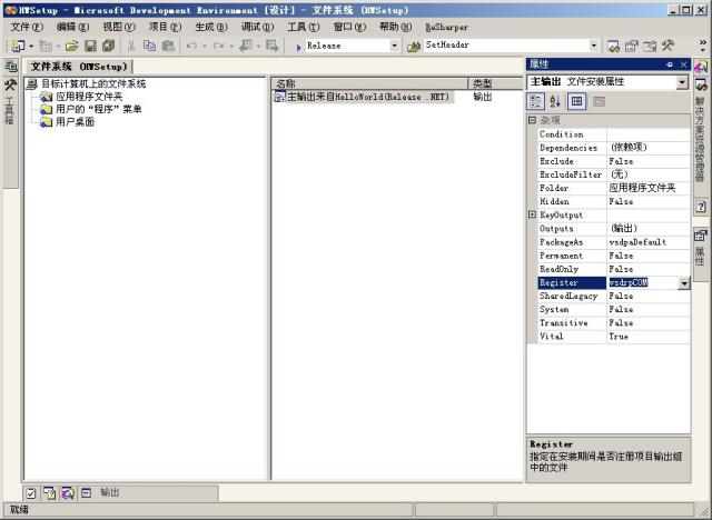 首先,我們建立一個windows安裝項目,并將ActiveX控件的主輸出添加到項目輸出中。然后,改動ActiveX控件的主輸出文件,將其Register屬性改為vsdrpCOM.如圖: