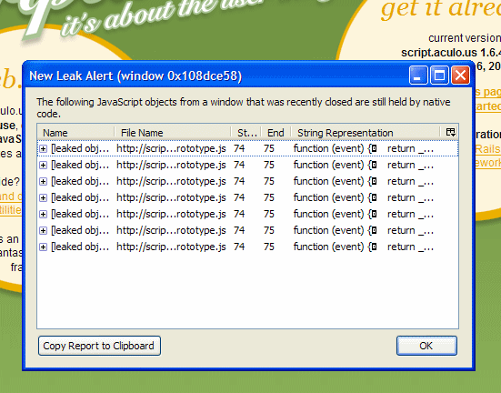 這應(yīng)該我是最常見的泄漏  prototype.js, line 74:3