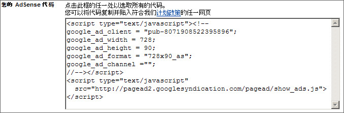 現(xiàn)在您已經生成了廣告代碼,可以將其添加到您的網頁了。如果滾動到"廣告布局代碼"頁的底部,您將在"您的 AdSense 代碼"框中看到代碼。您可將此代碼直接剪切并粘貼到您的網頁中。最多可以通過添加三組廣告代碼在每張網頁上放置三個廣告單元。