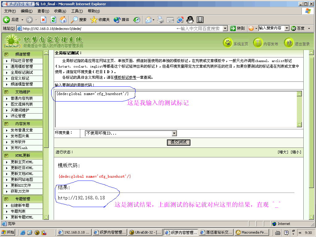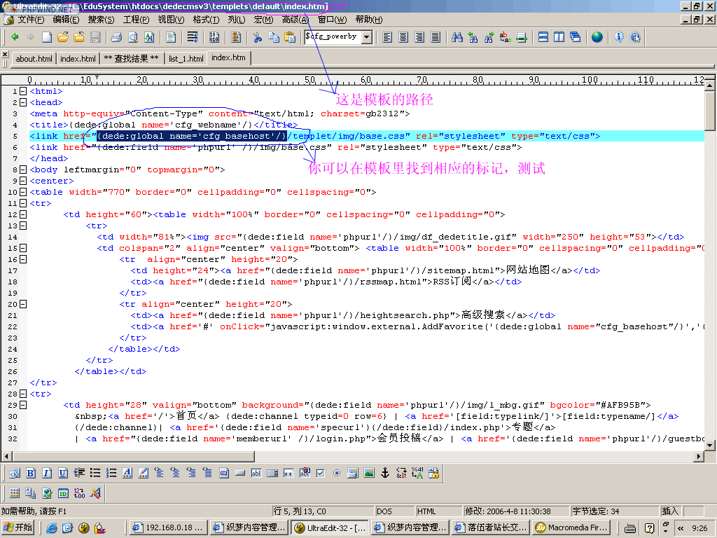 其中變量名稱不能加 $ 符號,如變量 $cfg_cmspath ,應該寫成 {dede:global name='cfg_cmspath' /} 。